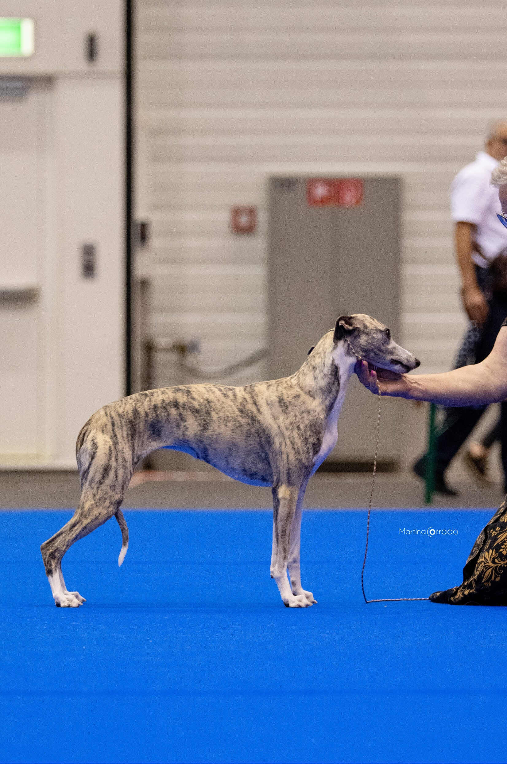 Moeder zal zijn Jazz, Multi Kampioen Shiny Sensation's Not That Kind. Jazz is een super social, lieve, aanhankelijk Whippet die het liefst de hele dag bij je zit, ligt of met je onderweg is.