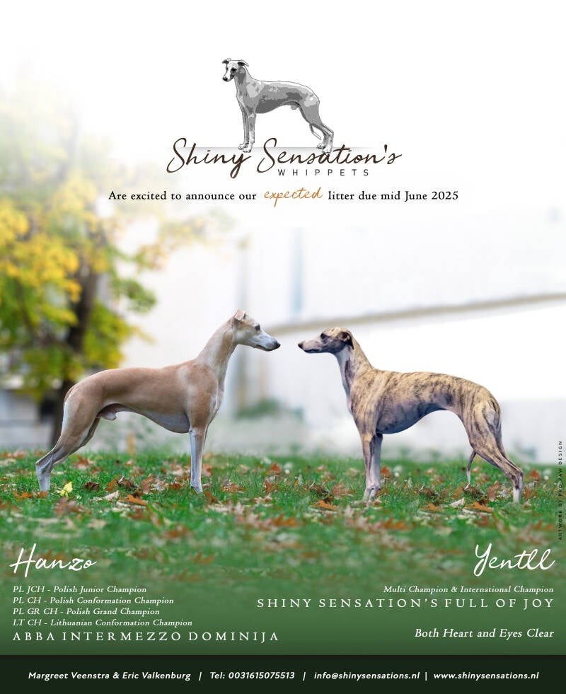 In het voorjaar van 2025 hopen wij op een nestje van Yentll, Multi Ch. & Int. Ch. Shiny Sensation's Full of Joy. Zodra Yentll gedekt is zullen we ook de vaderhond op de website bekend maken. Natuurlijk zullen beide getest zijn op hart en ogen.